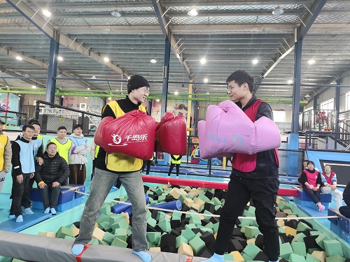 隨后,一系列富有挑戰性的團隊任務接踵而至。團隊競速卡丁車積分賽、蹦床投籃接力、獨木拳王等等一系列的任務需要員工們齊心協力,充分發揮每個人的優勢。在緊張刺激的角逐中,我們見證了無數令人動容的場景:有人奮力拼搏,力爭上游;有人默默付出,甘當綠葉;有人鼓勵他人,傳遞正能量……這些溫暖的瞬間讓我們深刻體會到了團隊的力量與合作的重要性。