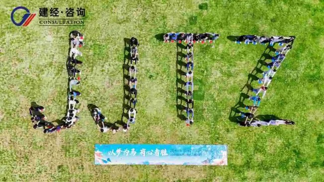 無人機掠過拈花灣的碧綠茶田與唐風古塔,在湛藍天幕下盤旋升空。茵茵草坪上,建經友康的家人們化身躍動的字符,以精準的協作與默契,將身影凝成一行震撼的誓言。   “JJTZ 2025”建經咨詢首字母縮寫)與年份數字交織如畫,如大地鐫刻的圖騰,將企業之名與奮進之志烙印于春日的山河長卷。
