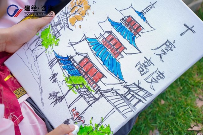 設計部的小伙伴發揮自身特長,臨摹撰寫小鎮美麗建筑風光——以志向為引,奔赴每一次遠行.