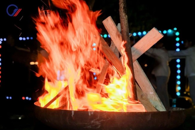 董事長黃志挺執火把走向篝火臺。焰光躍上木柴的瞬間,夜空仿佛被撕開一道金紅色裂口,歡呼聲震徹太湖!