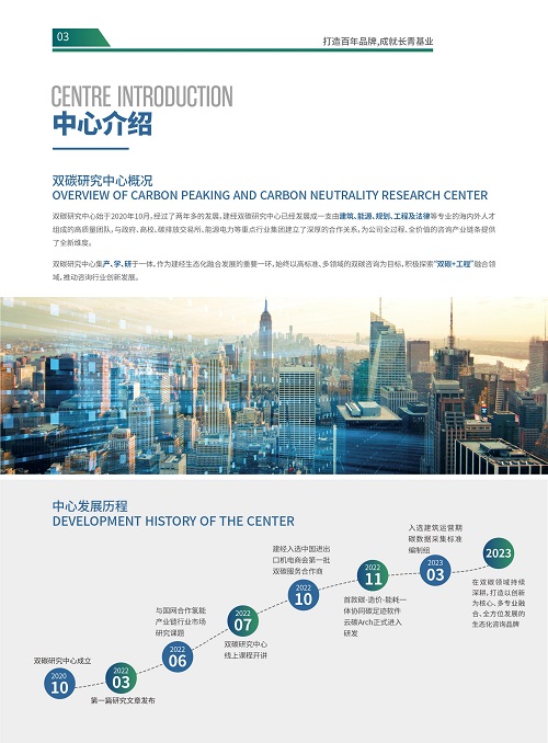 建經雙碳研究中心始于2020年10月,經過兩年多的發展,已經形成了一支由建筑、能源、規劃、工程及法律等專業的海內外人才組成的高質量團隊,與政府、高校、碳排放交易所、能源、電力等重點行業集團建立了深厚的合作關系,為公司全過程、全價值的咨詢產業鏈條提供了全新維度。